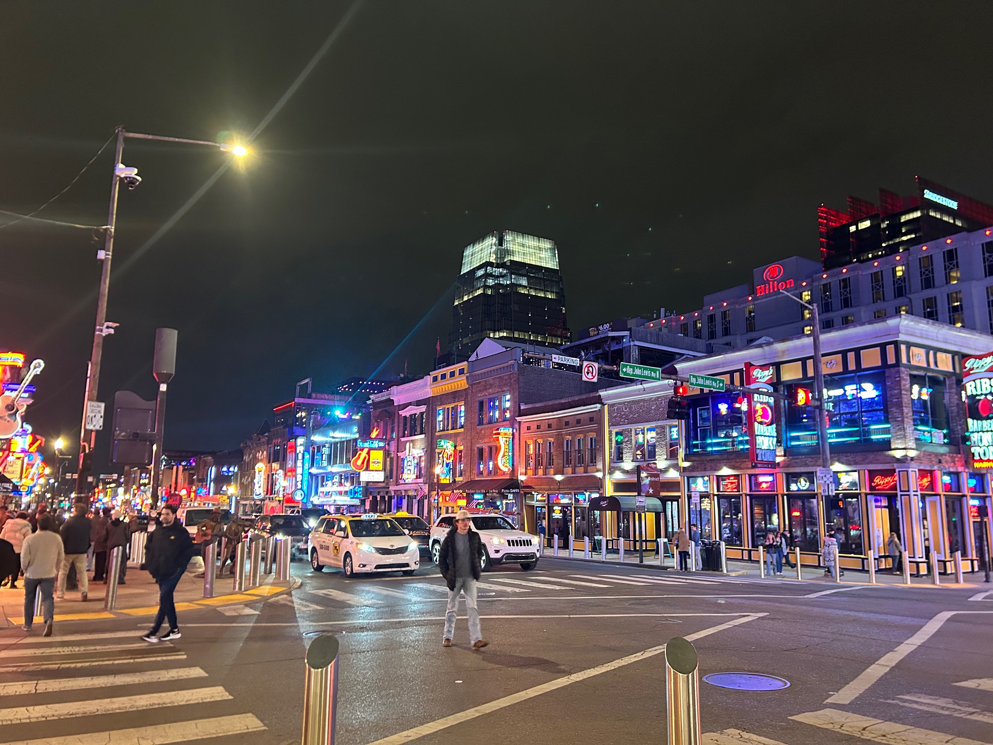夜が深まるほど盛り上がるメインストリートのホンキートンクストリート。どのお店からも生演奏が漏れ聞こえ、あちこちでラインダンスの輪が広がっています。