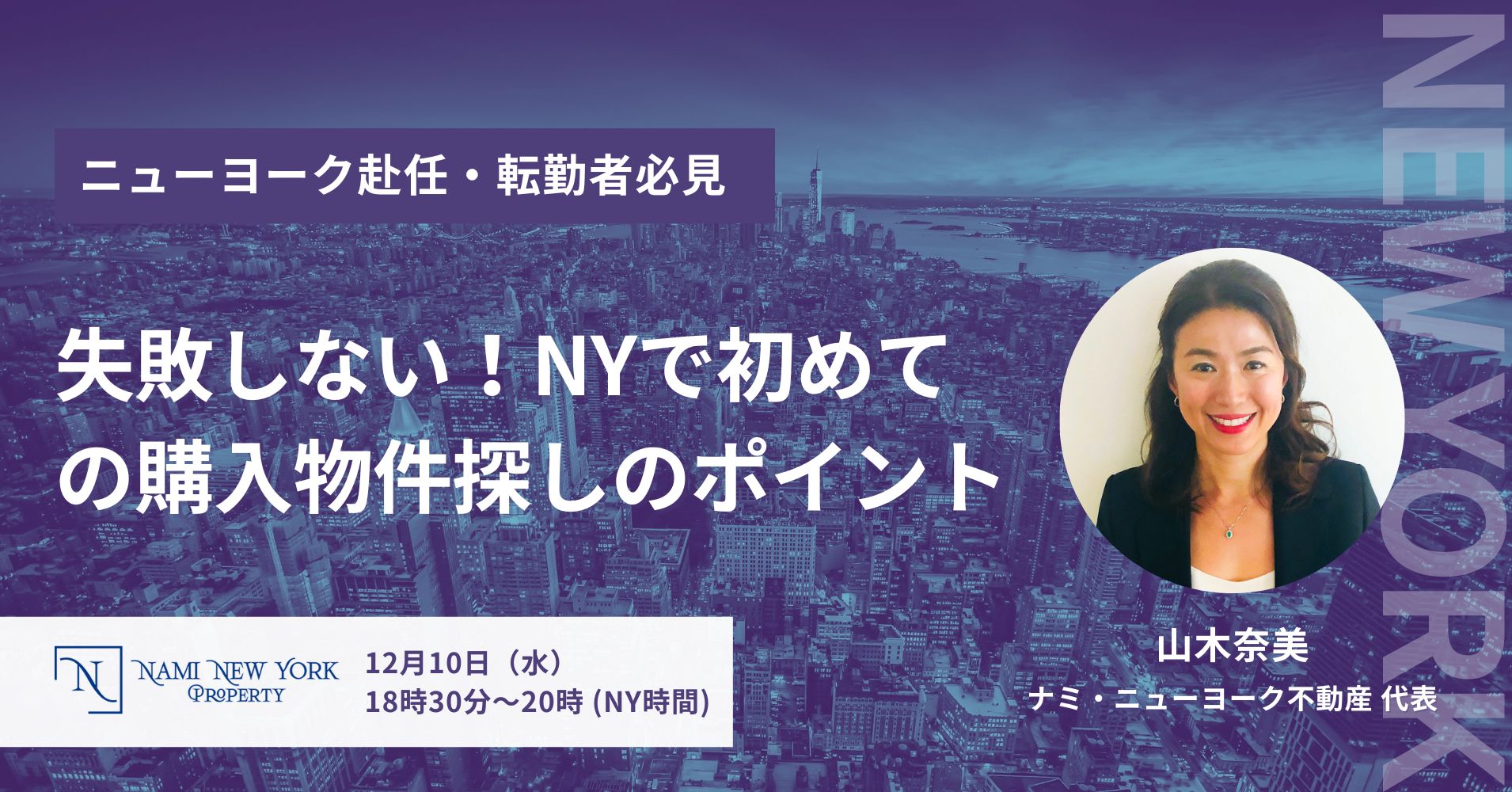 - 講師:ニューヨーク不動産ブローカー・山木奈美&梶谷ももこ